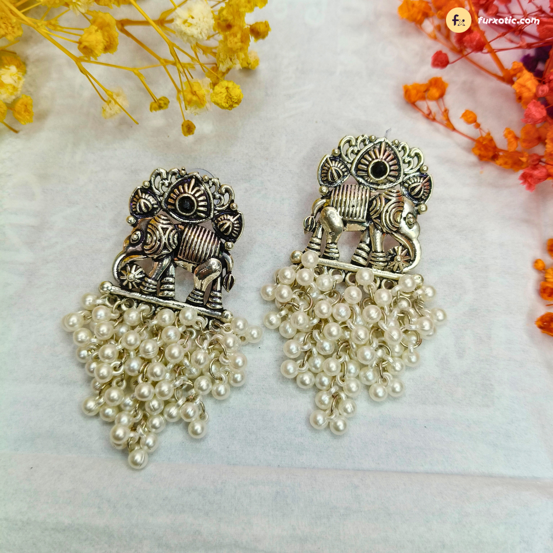 Beautiful Elephant Stud Earring With Long Pearl Chain