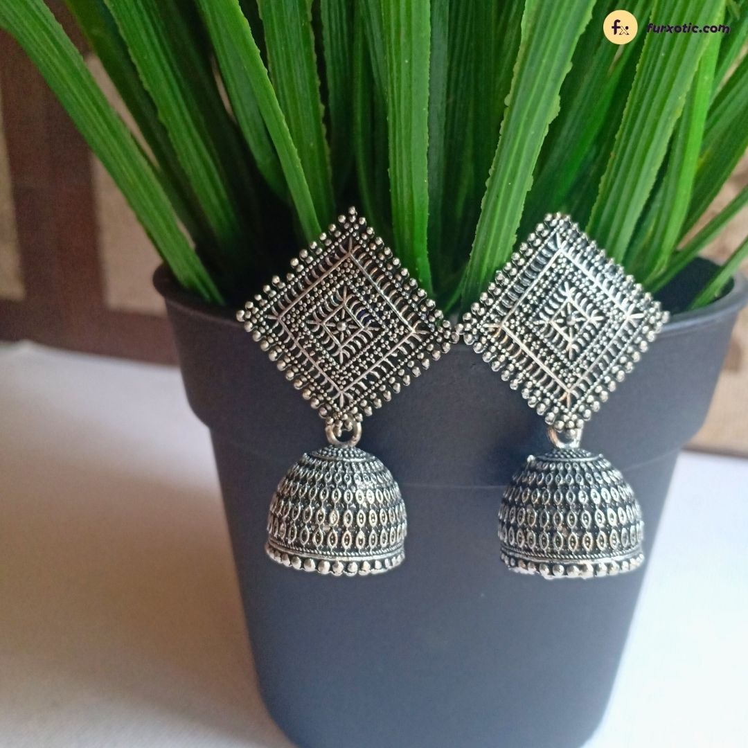 Small Oxidised Square Jhumka